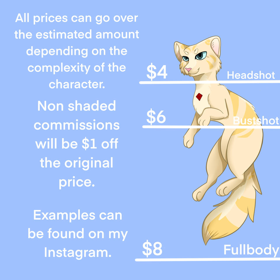 Thank you for looking at my commissions. If you have any questions please message me on Instagram or Email([email protected]).